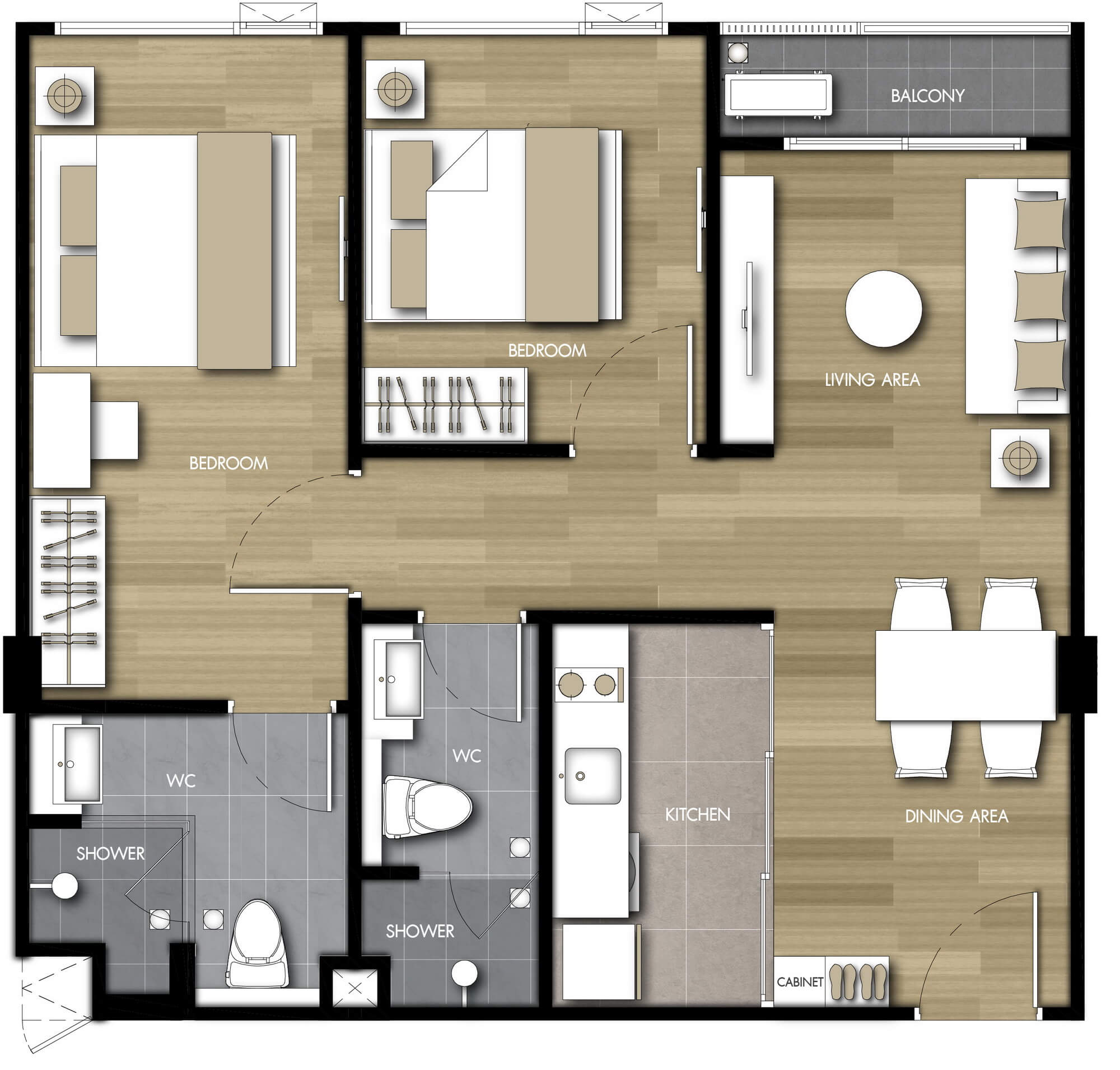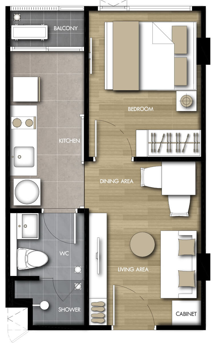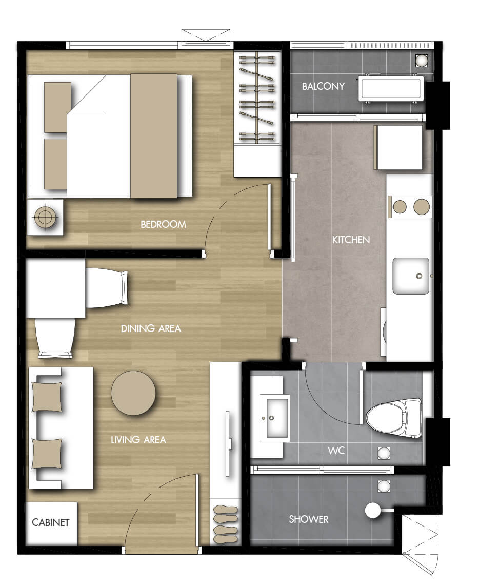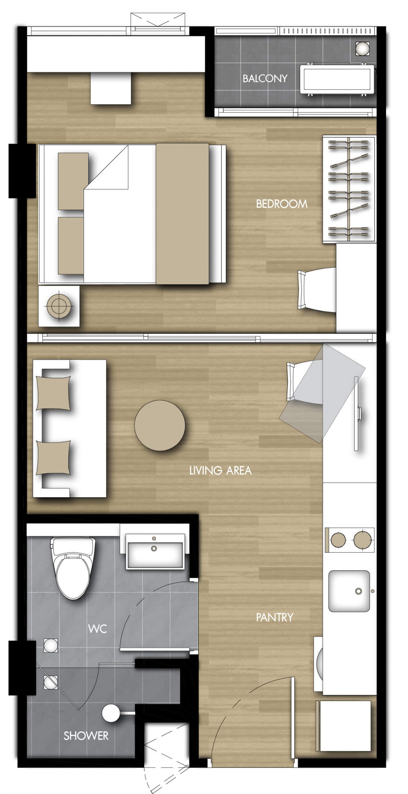 แบบห้องที่ต้องการ (TYPE)1 ห้องนอน (1 BEDROOM)2 ห้องนอน (2 BEDROOM)