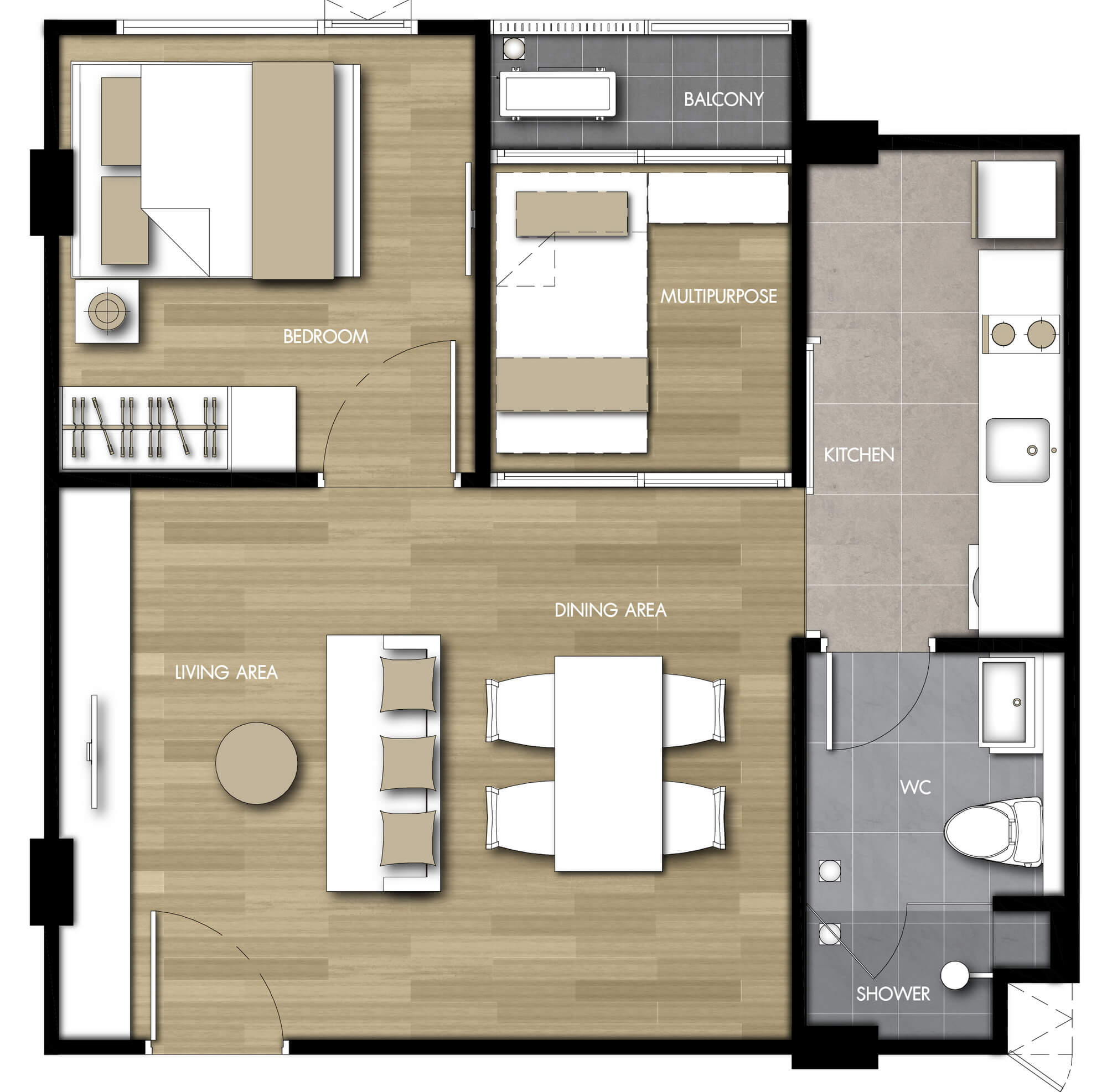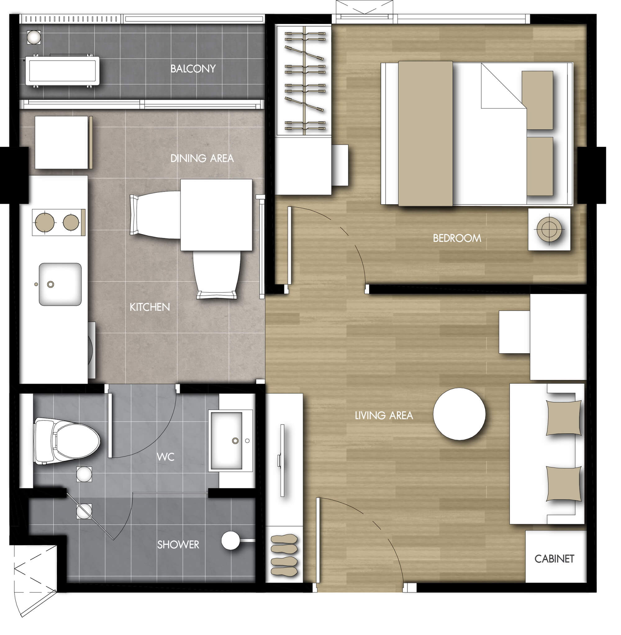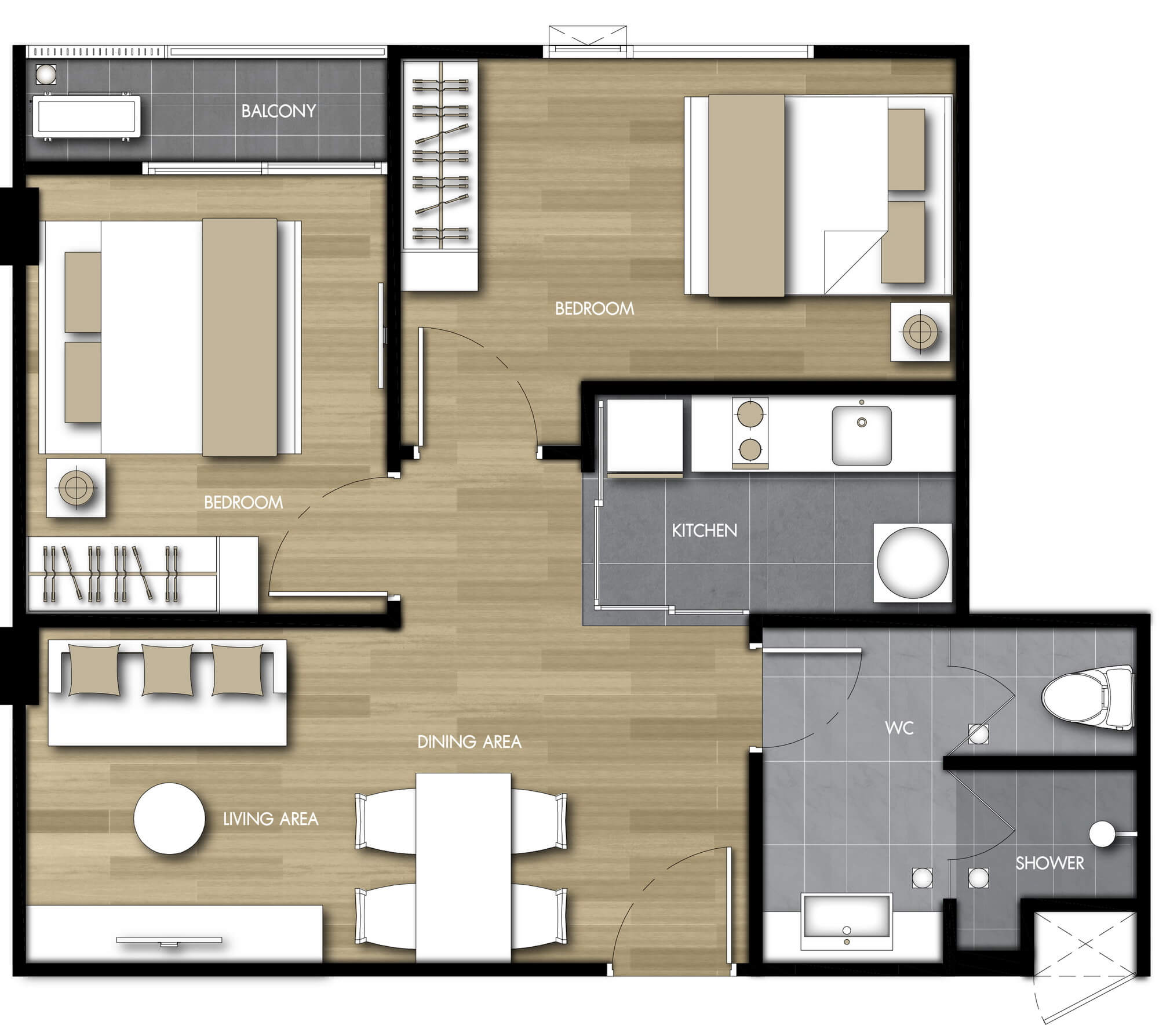 แบบห้องที่ต้องการ (TYPE)1 ห้องนอน (1 BEDROOM)2 ห้องนอน (2 BEDROOM)