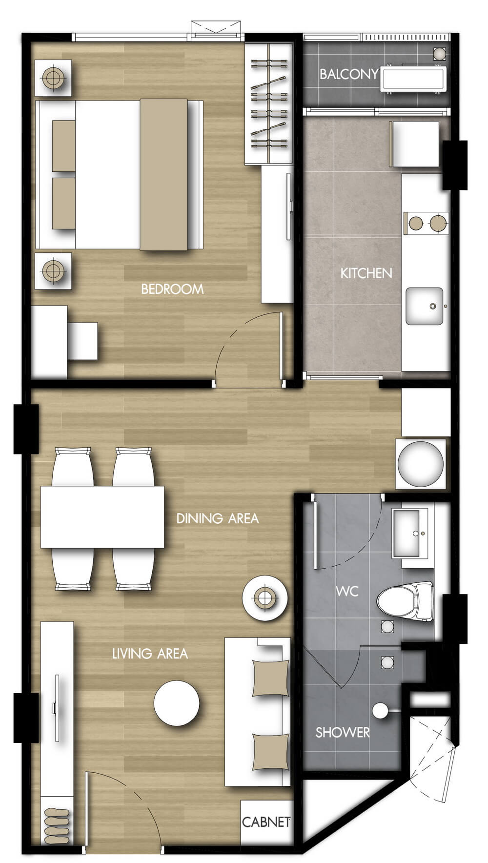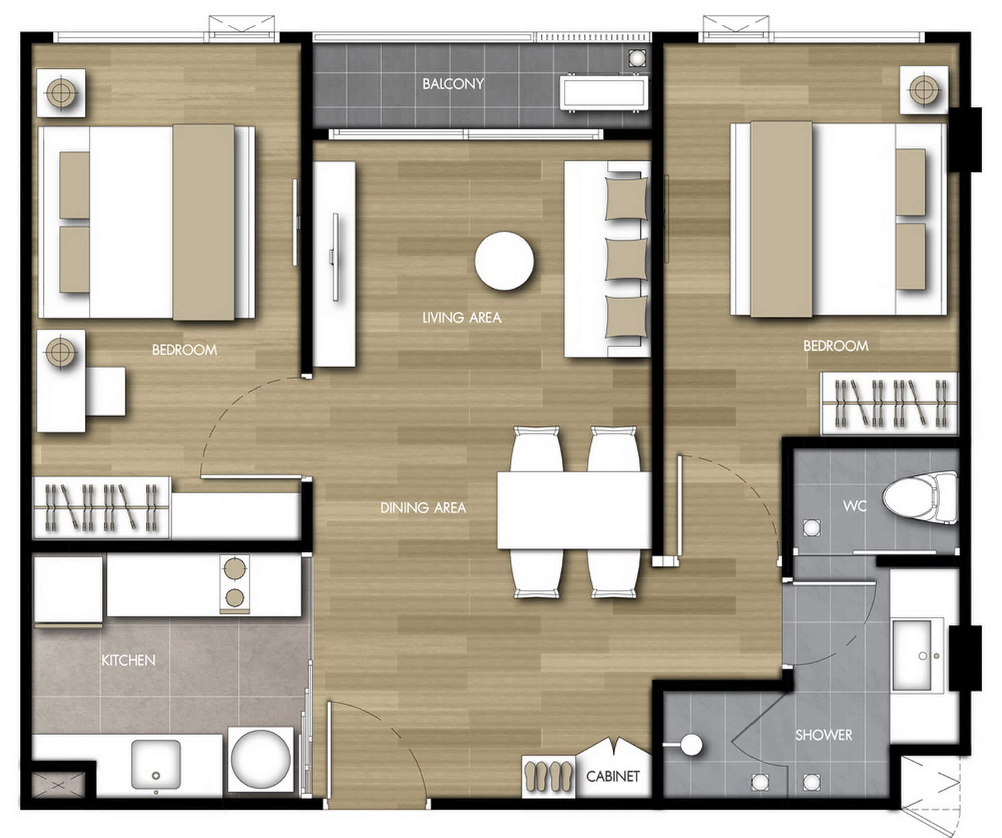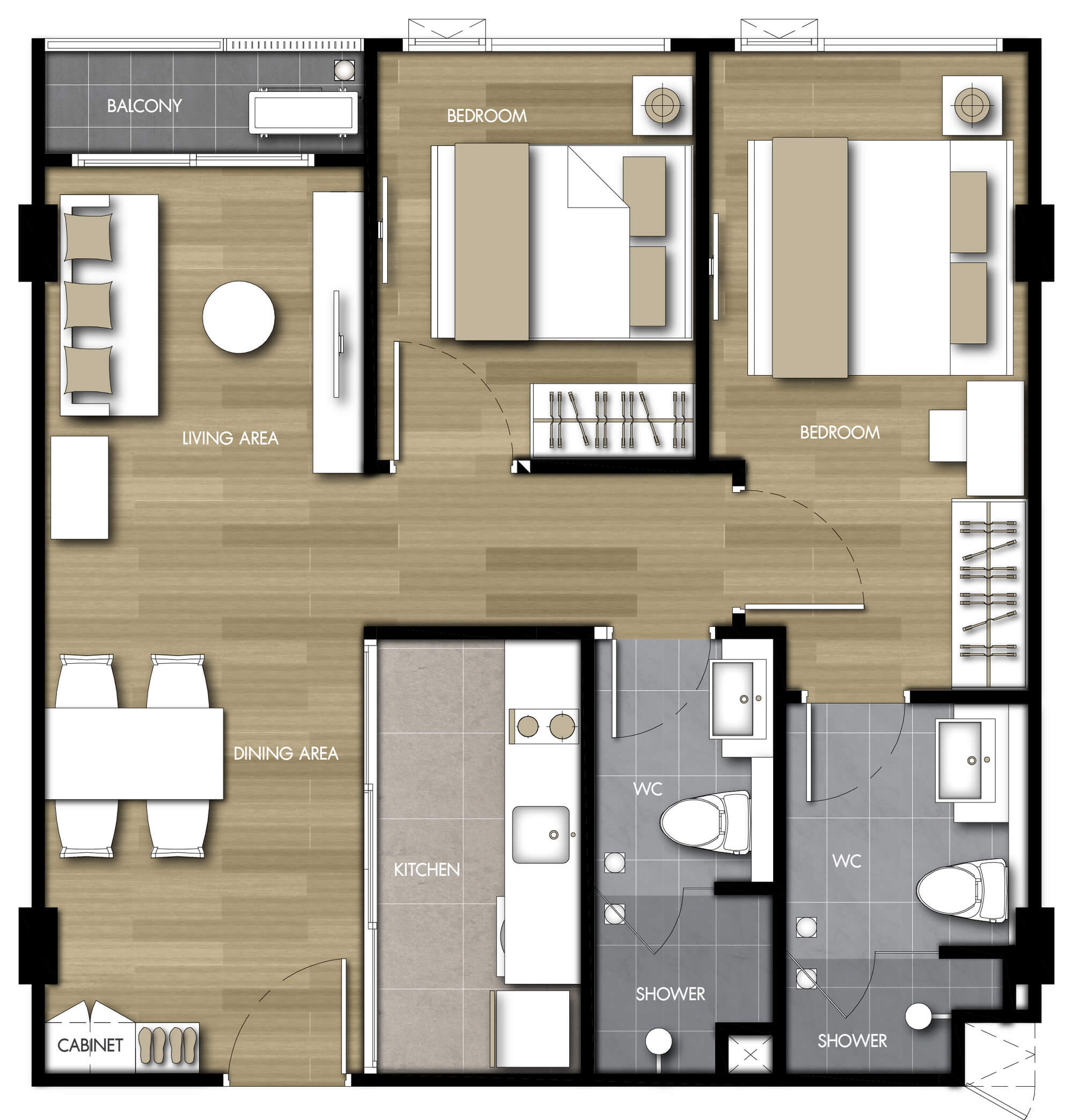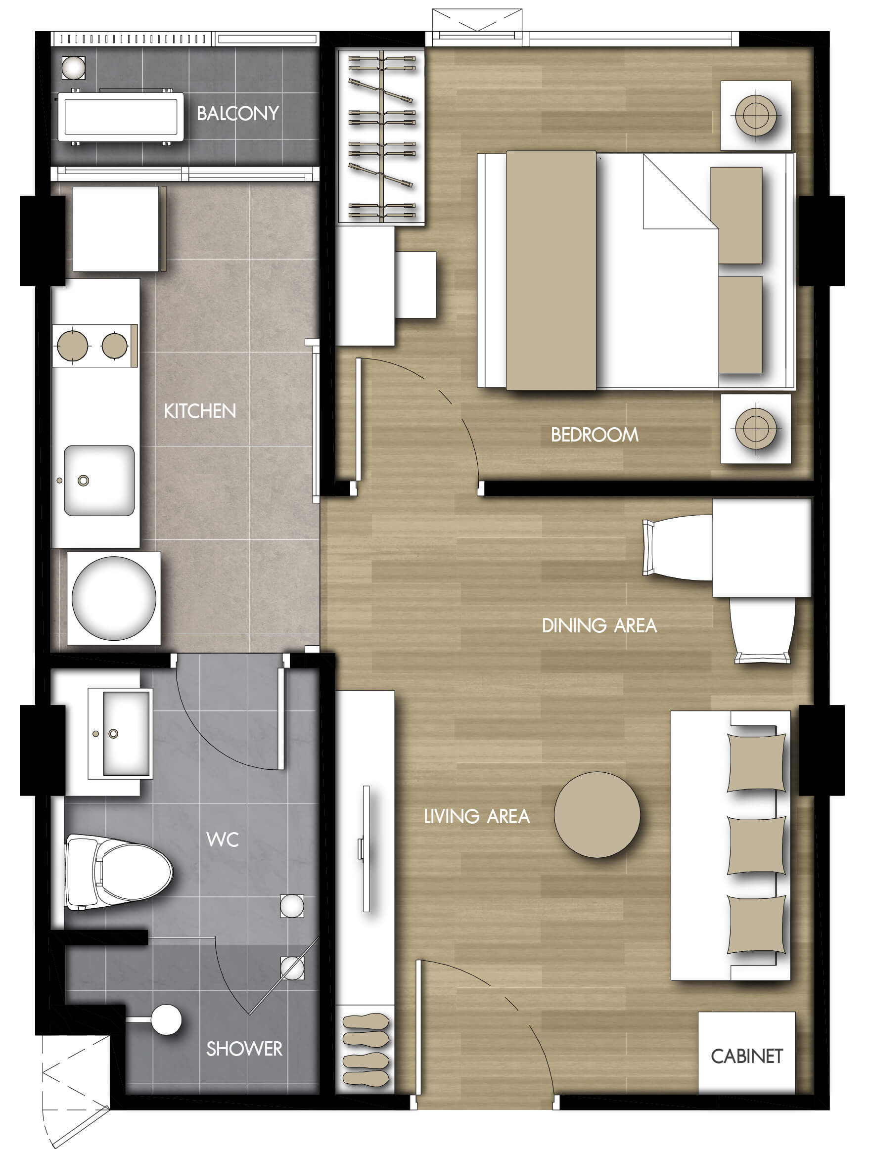 แบบห้องที่ต้องการ (TYPE)1 ห้องนอน (1 BEDROOM)2 ห้องนอน (2 BEDROOM)